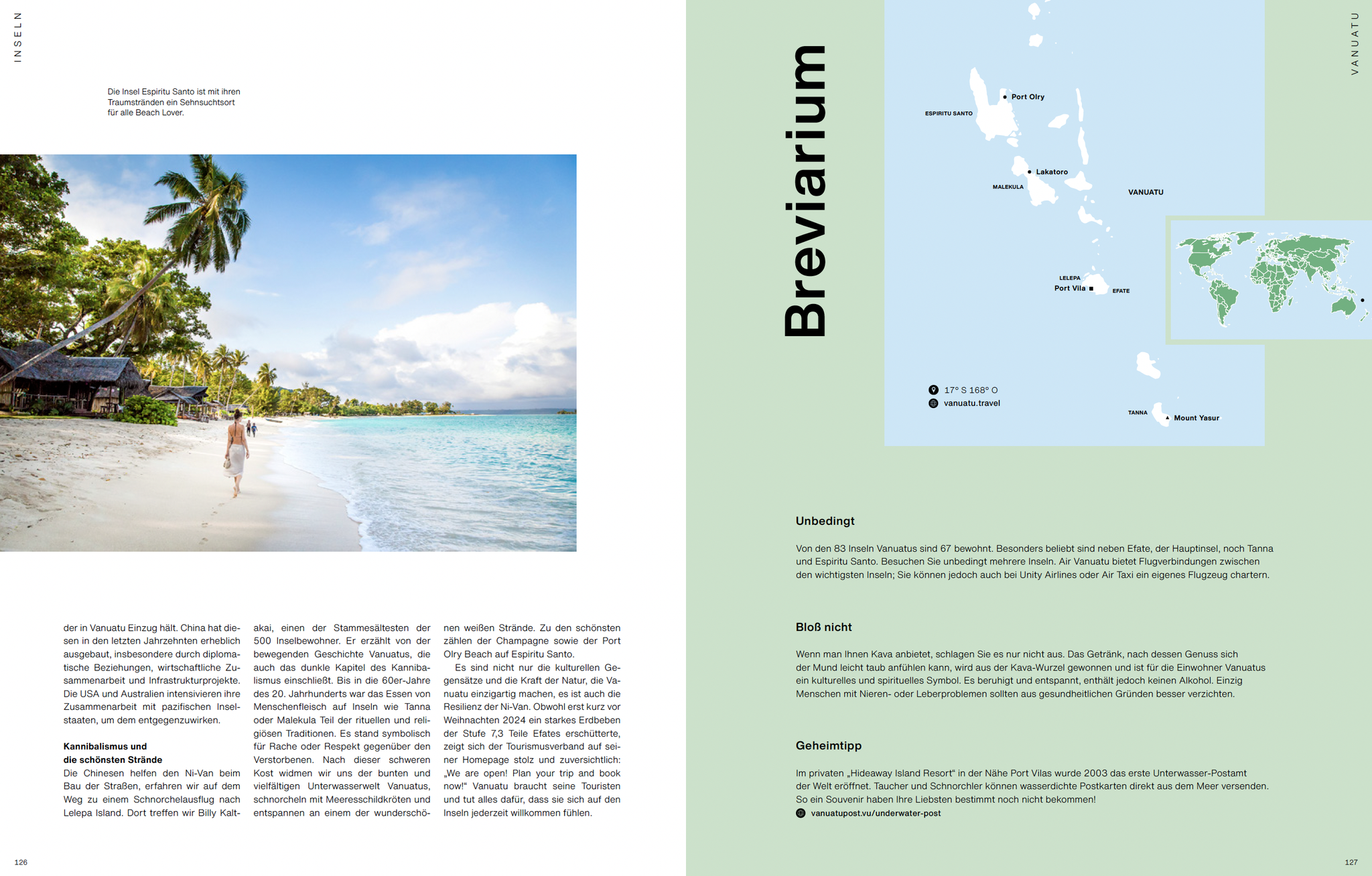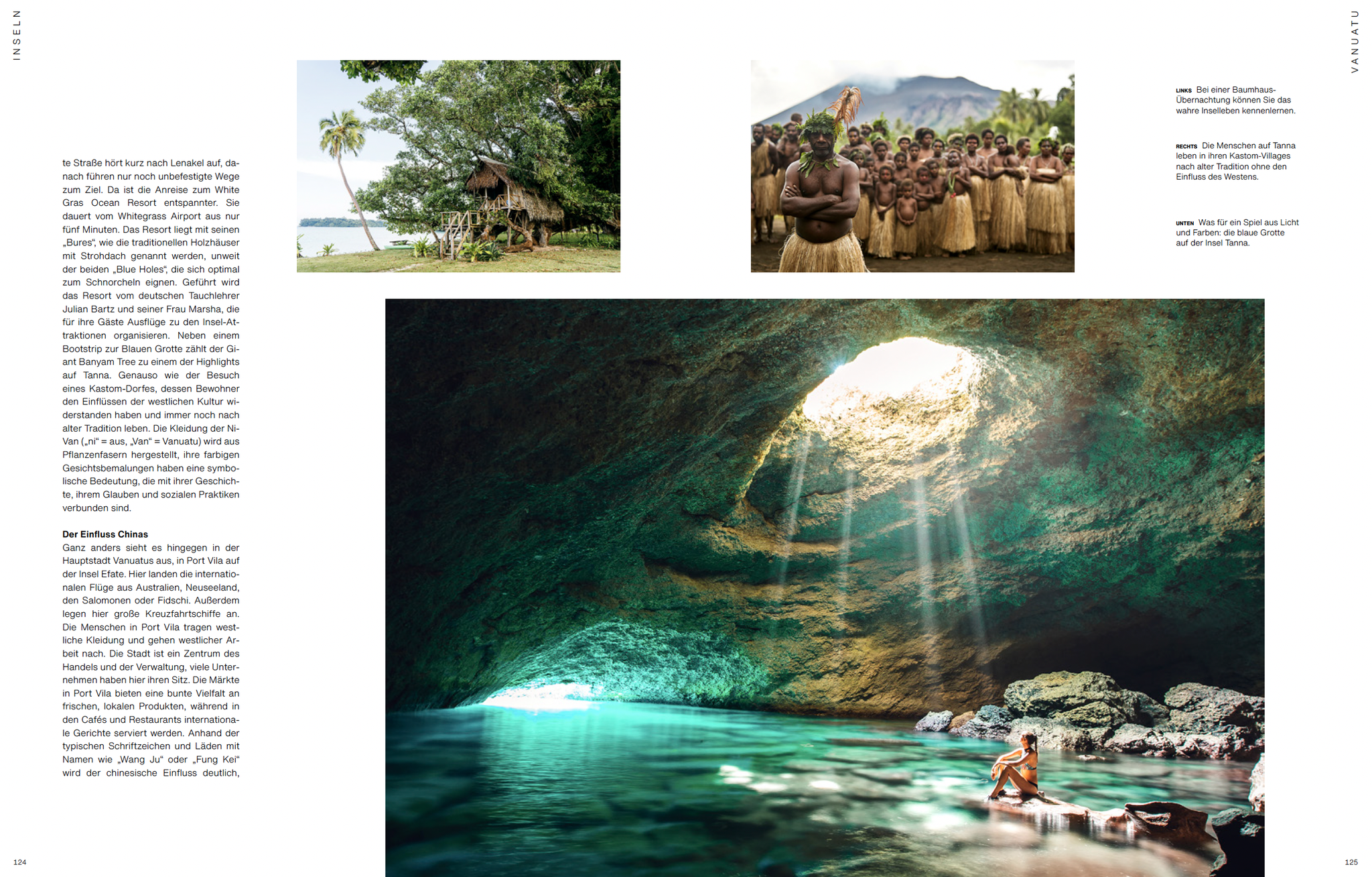 Nicht mal 250.000 Tourist:innen besuchen pro Jahr die Inselgruppe Vanuatu im Südpazifik. Mit den einsamen Stränden, beeindruckenden Tauchspots und aktiven Vulkanen ist das Land in Melanesien mit seinen 83 Inseln ein Sehnsuchtsort für alle, die ein Erlebnis zwischen Abenteuer, Natur und Erholung suchen. Mehr ...